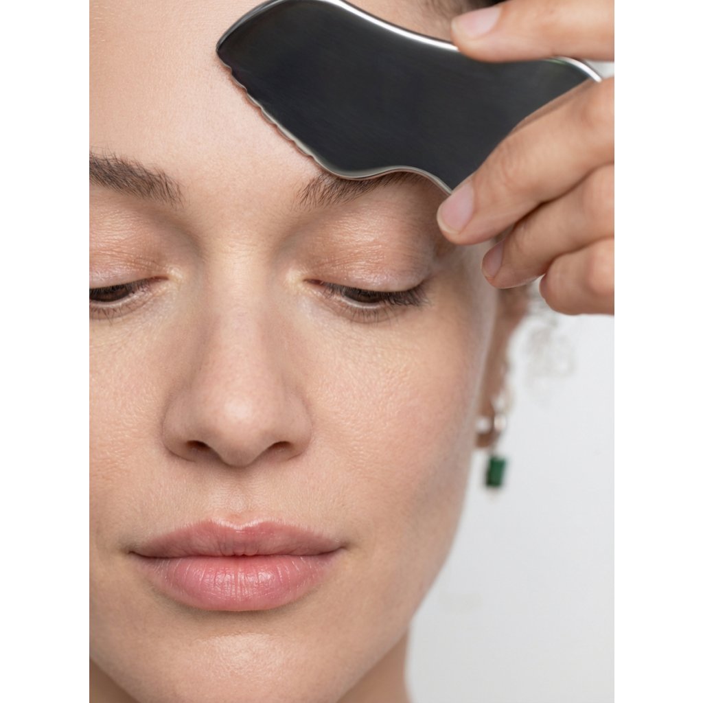 Objav silu kovovej Gua Sha masáže v modernom, profesionálnom prevedení od Wowbyme. Ergonomicky tvarovaný nerezový masážny nástroj Multi Sculpt je navrhnutý tak, aby dokonale kopíroval kontúry tváre a zároveň poskytoval intenzívnejší účinok vďaka špeciálne tvarovanej zúbkovanej hrane.