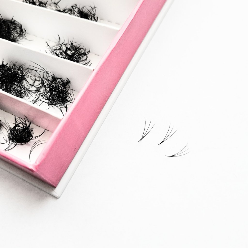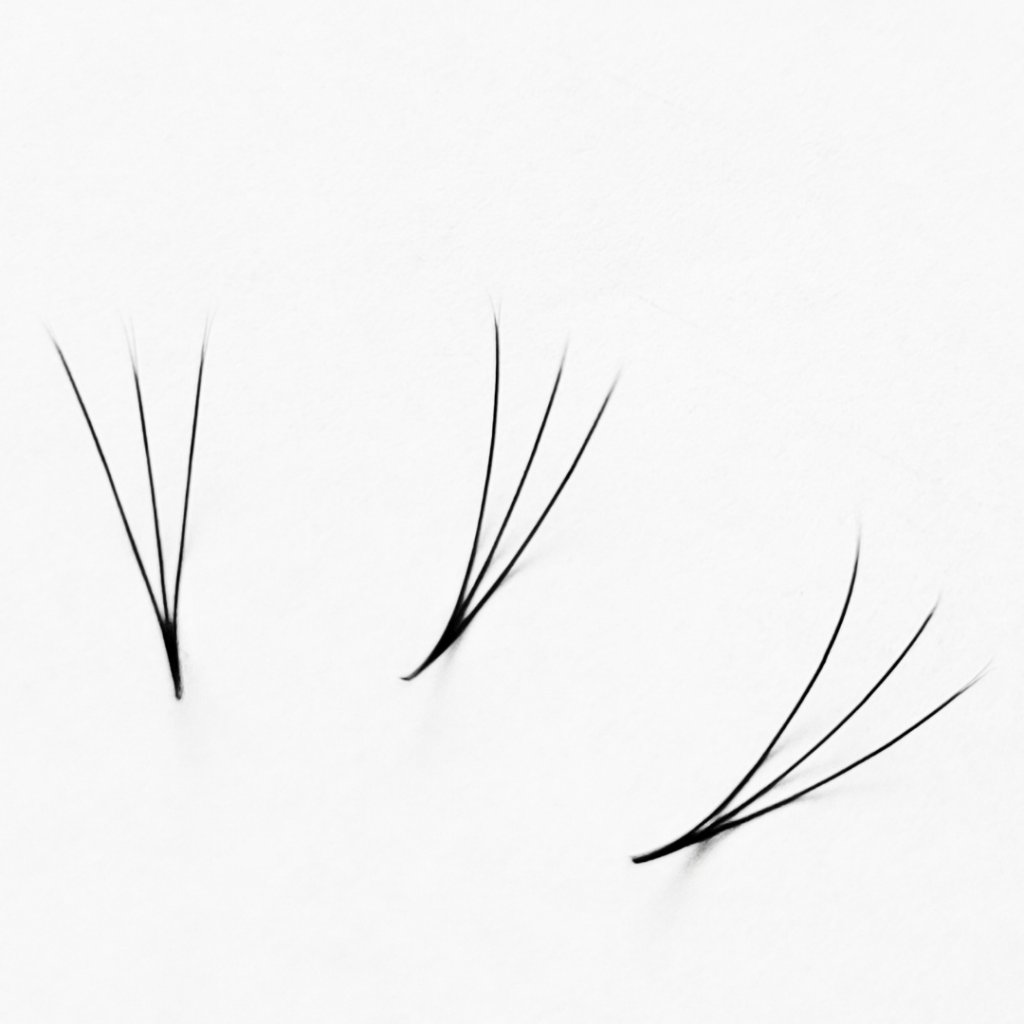Typ kašmírových řas. Řasy jsou ploché a každá řasa je na konci rozdvojená, což dodává výslednému efektu ještě větší objemový efekt, zároveň při nižší tloušťce a zatížení řas. Vytvářejte odlehčené "hluboce černé" výrazné a extrémně objemové efekty na očích zákaznic díky řasám pro extrémní objem.