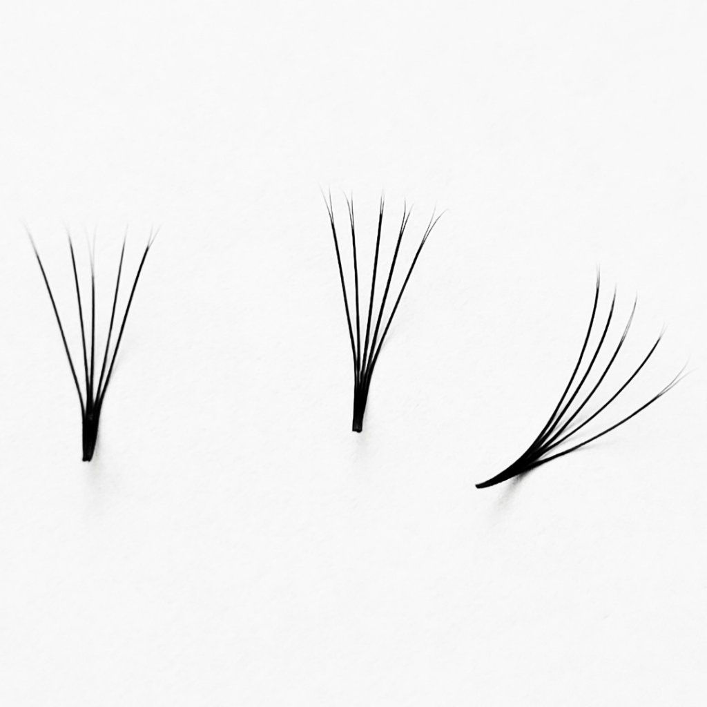 Tyto kašmírové řasy. Řasy jsou ploché a každá řasa je na konci rozdvojená, což dodává výslednému efektu ještě větší objemový efekt, zároveň při nižší tloušťce a zatížení řas. Vytvářejte odlehčené "hluboce černé" výrazné a extrémně objemové efekty na očích zákaznic díky řasám pro extrémní objem.