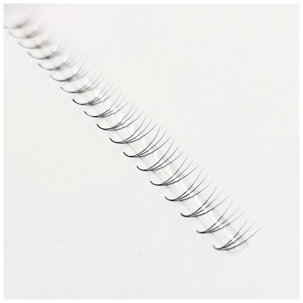- spoje vějířků úzké jsou vytvářeny ručně a jednotlivé řasy jsou ukládány na sebe. Vějířek je nejužší z naší nabídky a stopka je ještě delší než v klasickém balení 1000ks. Celkově vějířek působí nejjemněji, spoj je precizně tenký v závislosti na „počtu D“