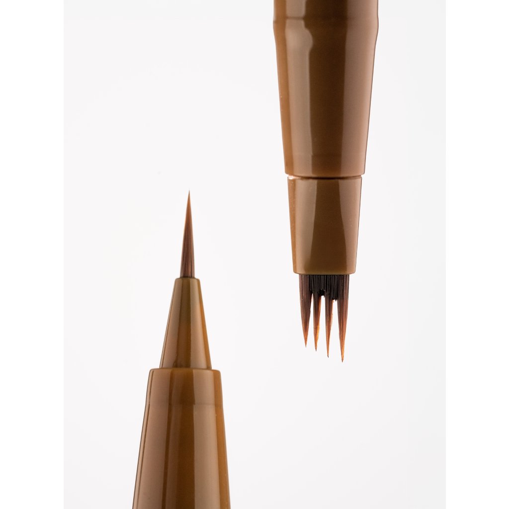 Ostrý tvar aplikátoru umožňuje vytvořit dokonale ostrý konec obočí. Linka je intenzivně pigmentovaná pro sytou a dlouhotrvající barvu, přičemž mono aplikátor pomáhá vytvářet jemné a přirozené linie napodobující jednotlivé chloupky.