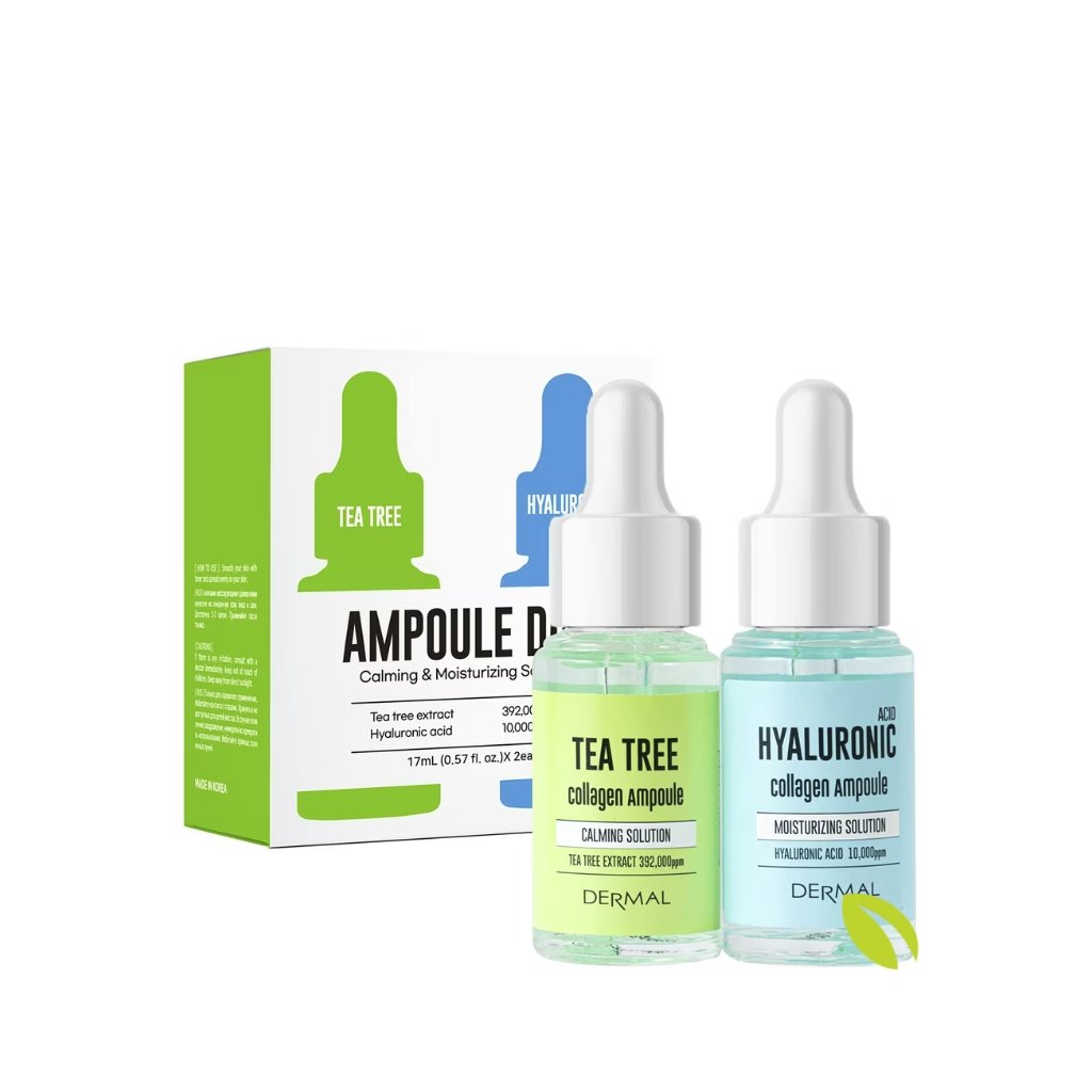 DUO Tea Tree & Hyaluronic Acid Collagen Ampoule prináša inovatívnu dvojitú formulu – kombináciu protizápalového čajovníka a hlboko hydratačnej kyseliny hyalurónovej s kolagénom.