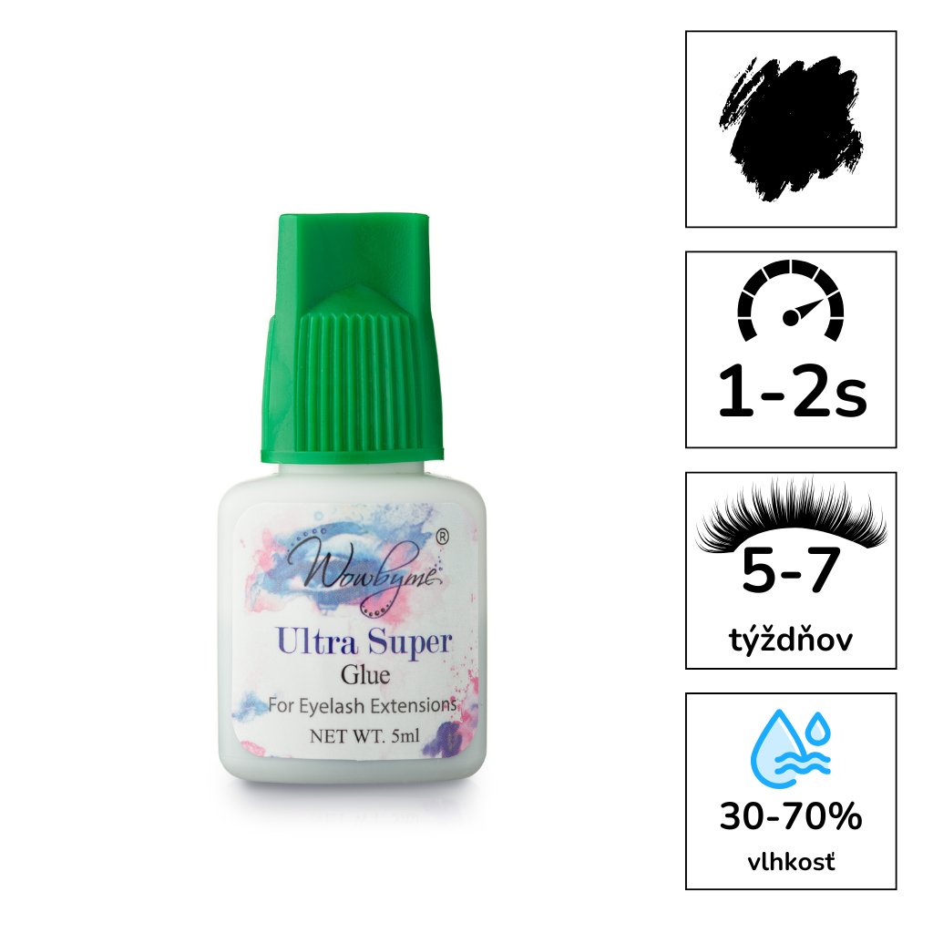 Ultra Super WOWBYME adhesive is very popular among professionals due to its excellent properties that guarantee fast drying, long durability after application, and it does not sting the eyes.Ultra Super WOWBYME adhesive is very popular among professionals due to its excellent properties, which guarantee fast drying, long durability after application, and does not sting the eyes. Ultra super adhesive is a reliable and professional adhesive with a retention of 1-2 seconds.
