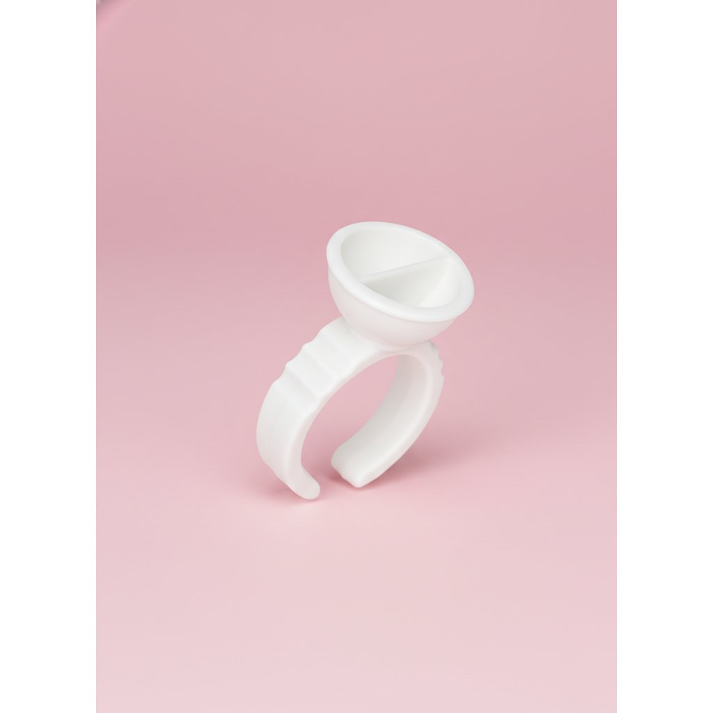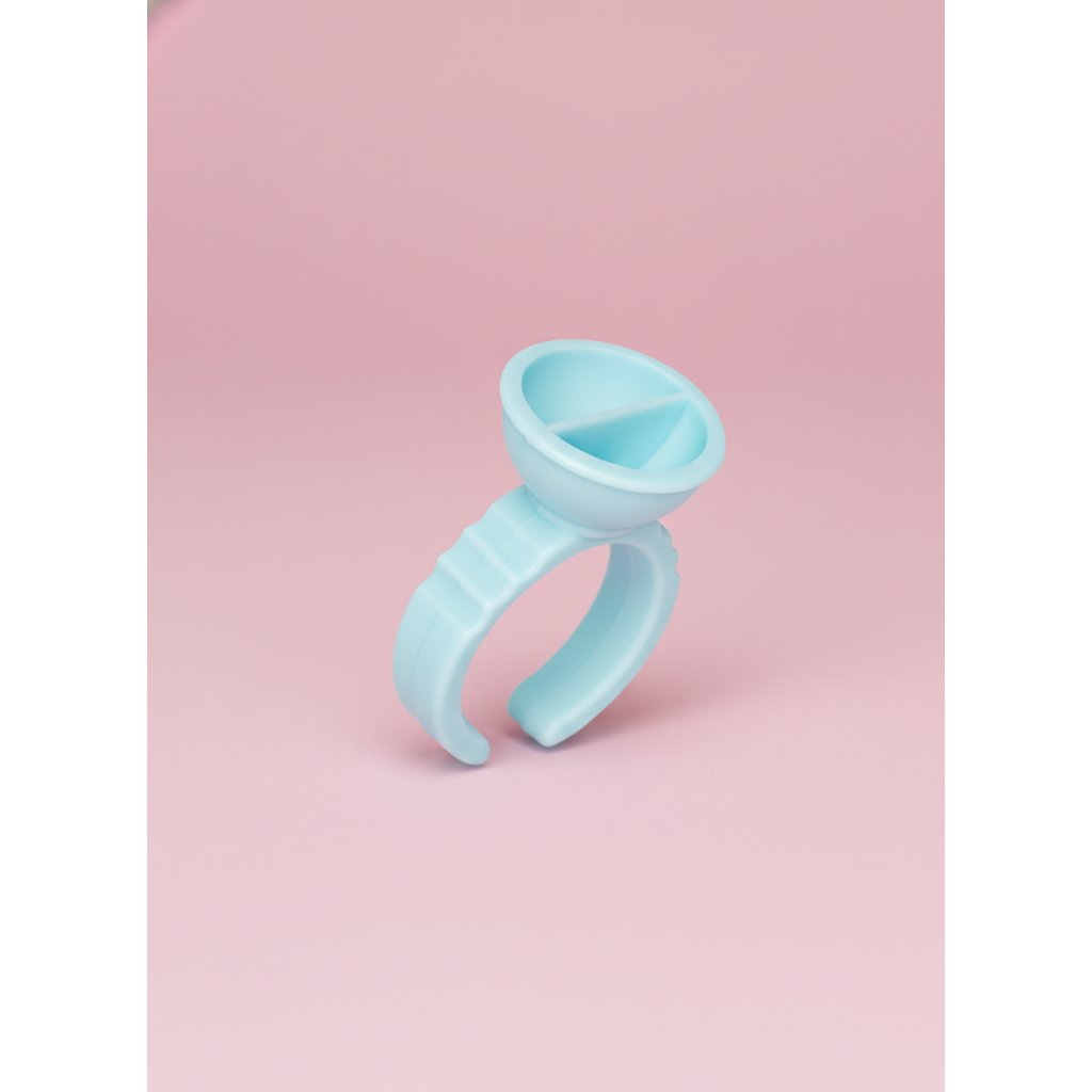 The single-chamber glue ring is a simple but extremely effective tool for applying artificial eyelashes. Just put it on your finger and apply a drop of adhesive into it. Just put it on your finger and apply a drop of adhesive.