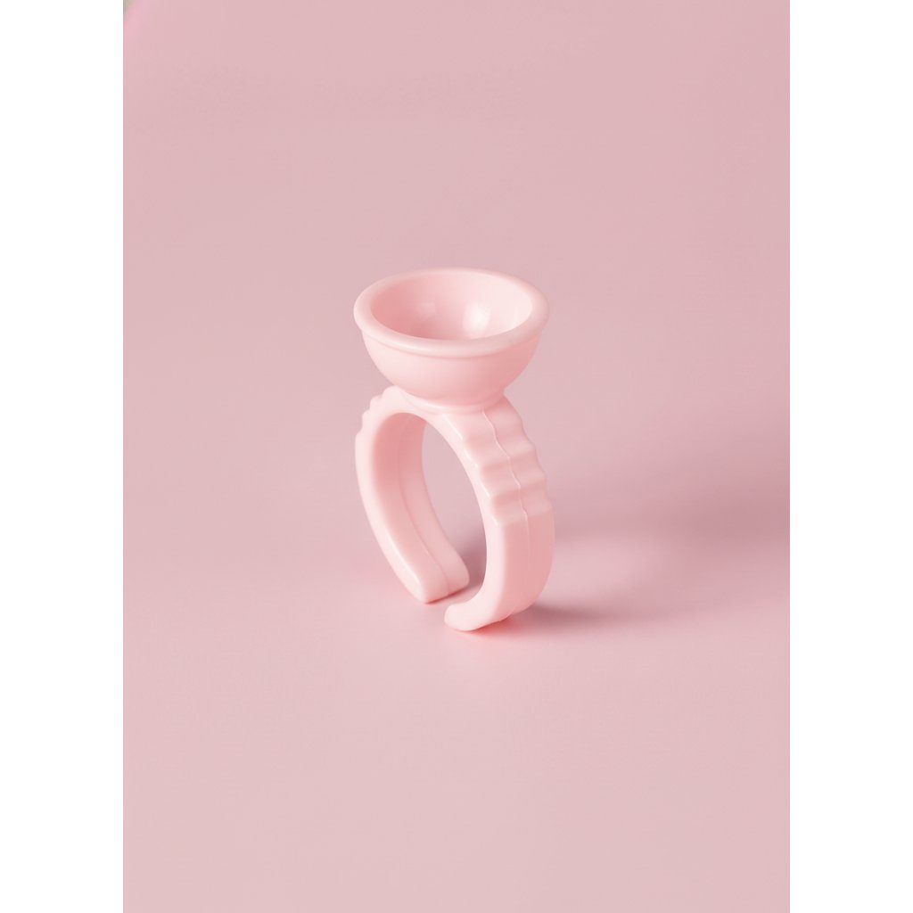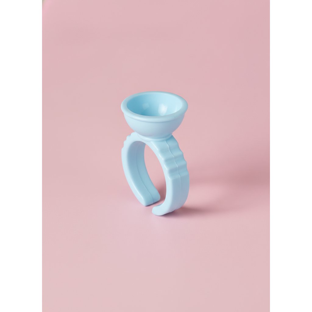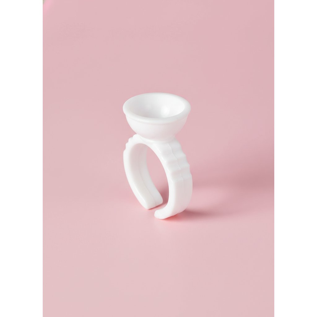 The single-chamber glue ring is a simple but extremely effective tool for applying artificial eyelashes. Just put it on your finger and apply a drop of adhesive into it. Just put it on your finger and apply a drop of adhesive.