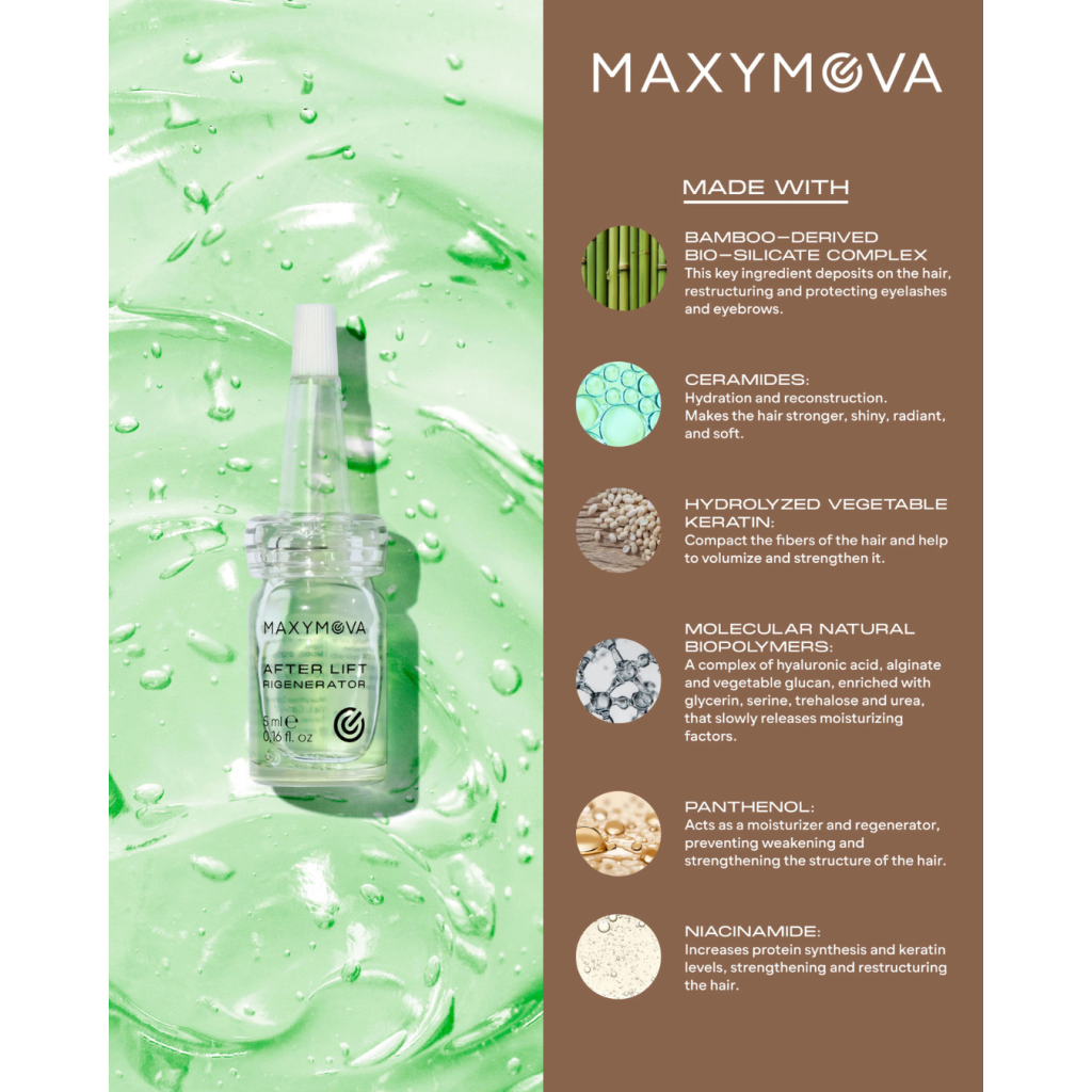 MAXYMOVA After Lift Regenerator Serum (set 10×1,5 ml) je pokročilé regeneračné sérum určené na použitie počas lash liftingu aj ako následná starostlivosť.