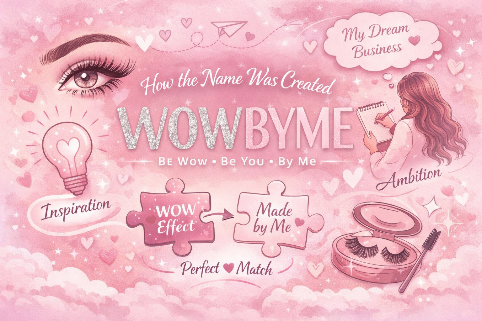 Začalo to myšlienkou a láskou ku krásnym a predĺženým mihalniciam. Pridali sme trošku húževnatosti, odhodlanosti, risku, kreativity, brainstormingu a komunikácie s dodávateľmi a hodín práce, kým sme prišli na trh s prvými produktami pod vlastnou značkou WOWBYME. Pri vyskladávaní, rozširovaní portfólia a ponuke produktov dbáme na spoľahlivých výrobcov a dodávateľov, zákaznícky servis, dostupnosť a taktiež cenu.