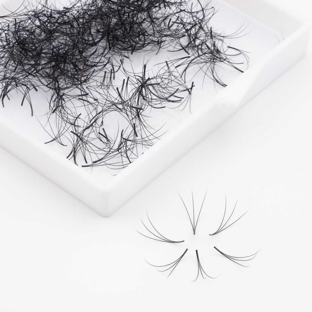 Vejáriky v takejto podobe zaručujú rýchly spôsob objemového predlžovania a zahusťovania umelých mihalníc.