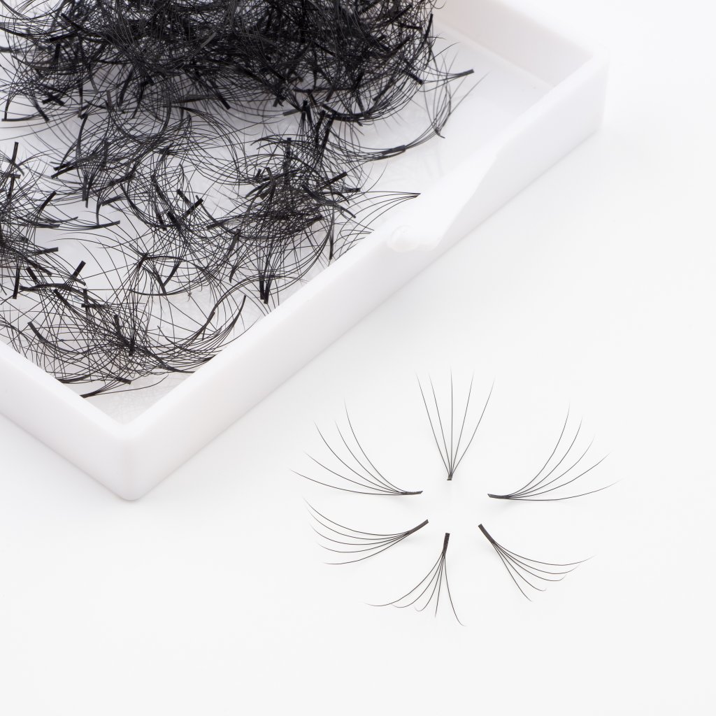 Vejáriky v takejto podobe zaručujú rýchly spôsob objemového predlžovania a zahusťovania umelých mihalníc.