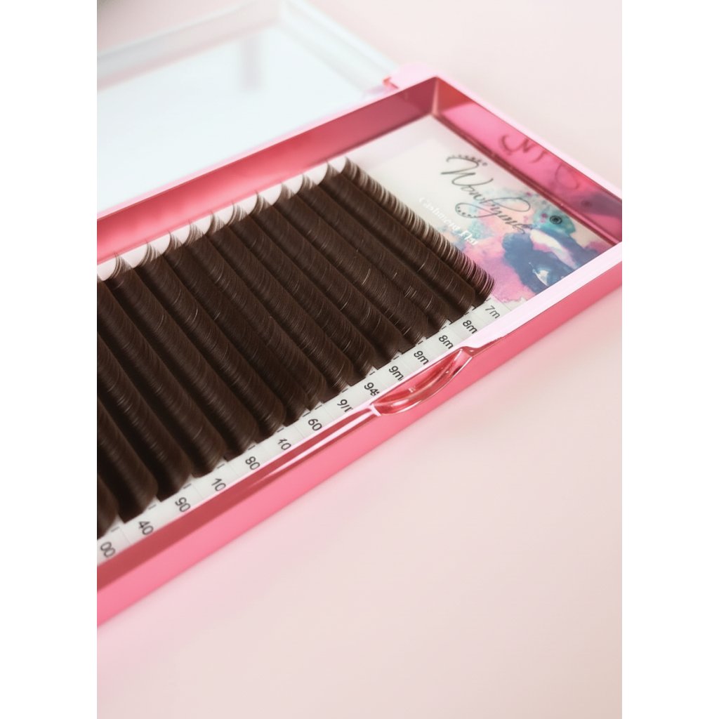 Mihalnice majú tmavý čokoládový odtieň, ktorý dodáva riasam hlboký, prirodzený a zároveň intenzívny vzhľad. Tento odtieň je ideálny pre vytváranie jemnejších a prirodzene pôsobiacich lash lookov a je obzvlášť vhodný pre klientky so svetlou pleťou, blond alebo ryšavými vlasmi.
