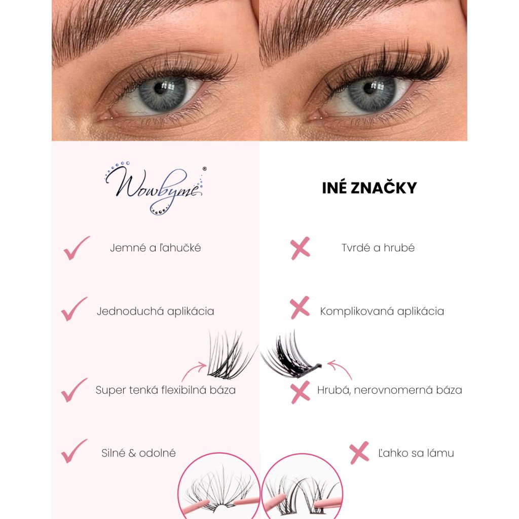 Wowbyme Fox sú ideálnou voľbou pre každého, kto miluje čistý, predĺžený a elegantný lash look s minimálnym úsilím.
