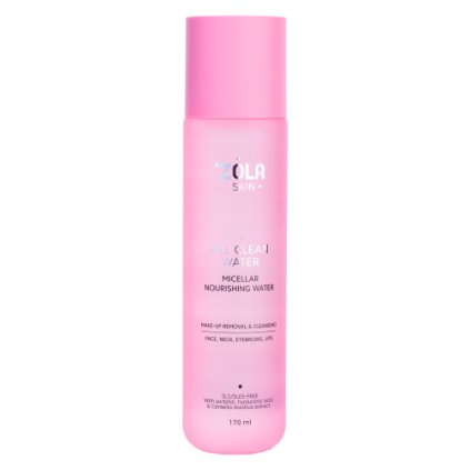 ZOLA Micelárna voda: Pre všetky typy pleti, hydratuje a chráni pred dehydratáciou. Vhodná pre citlivú pleť, nedráždi oči, nezanecháva film. Ideálna pre komplexnú starostlivosť.